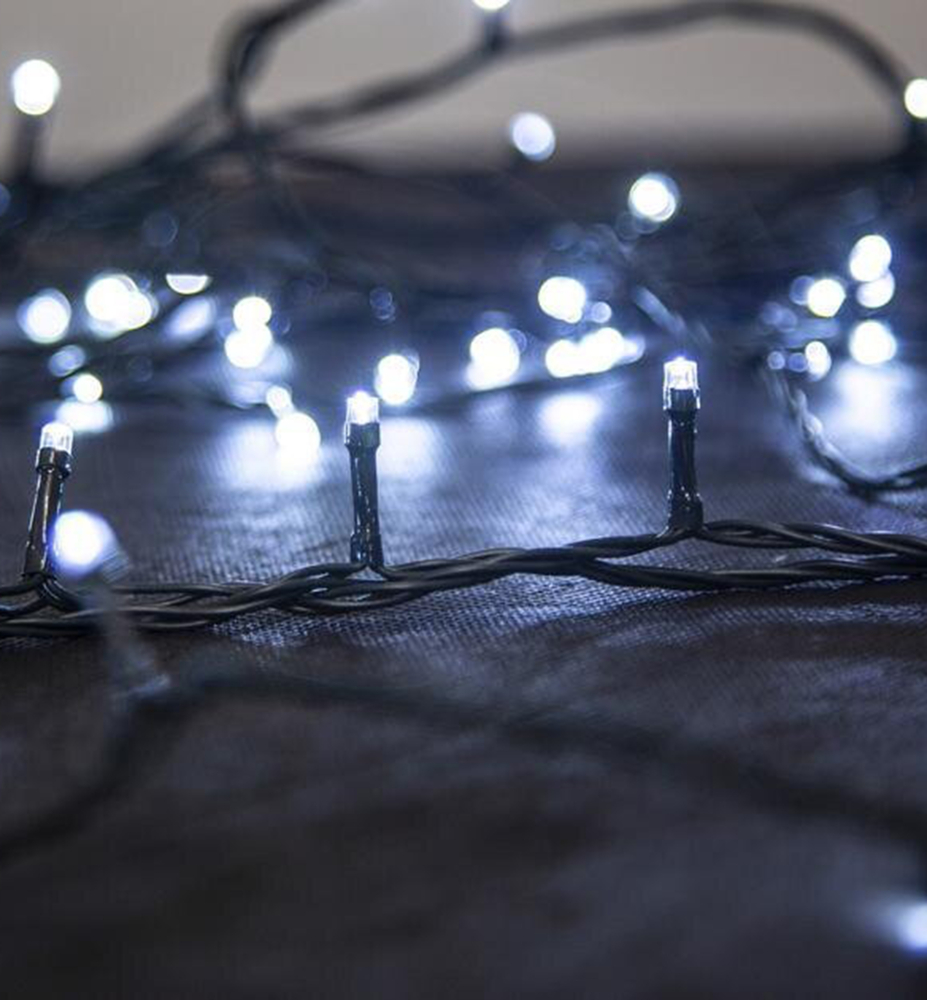 LED vianočná reťaz v studenej bielej farbe na vonkajšie použitie.