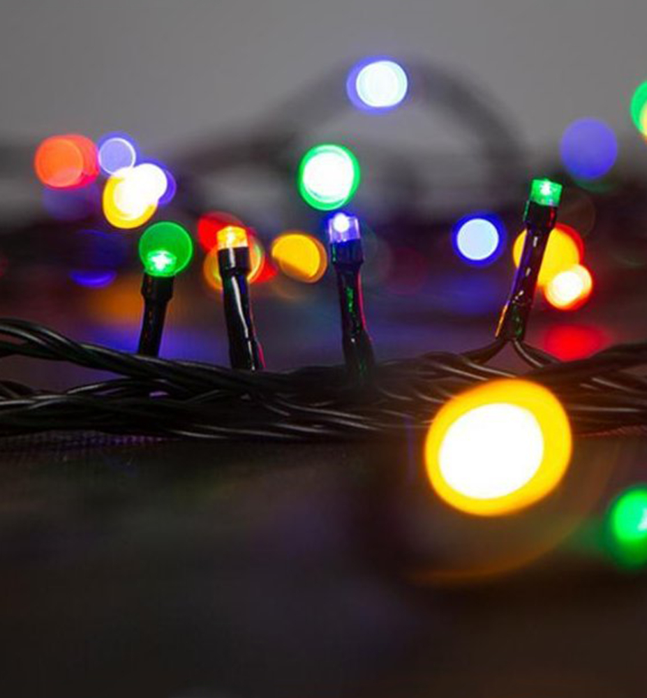 Vianočná farebná LED reťaz na vonkajšie použitie.