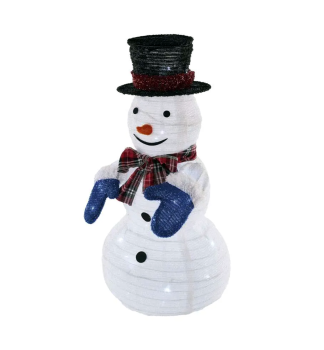 Vianočná dekorácia snehuliak so zabudovanými LED svetielkami.