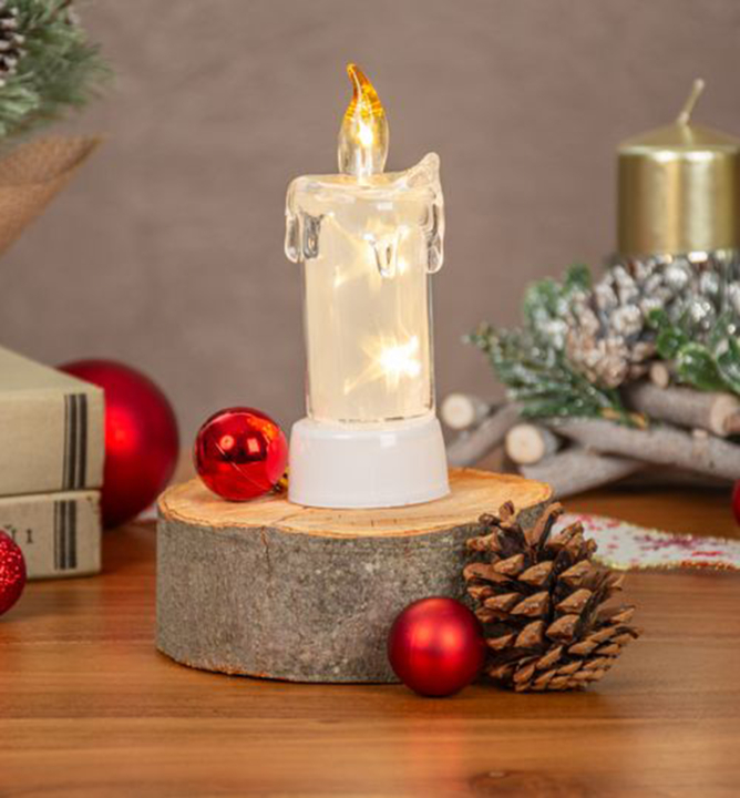 Vnútorná LED sviečka s teplým bielym svetlom.
