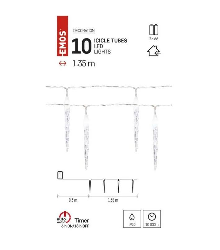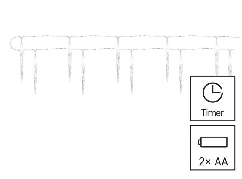 LED vianočná girlanda – CENCÚLE 10 ks, 1,35 m, vonkajšia, studená biela