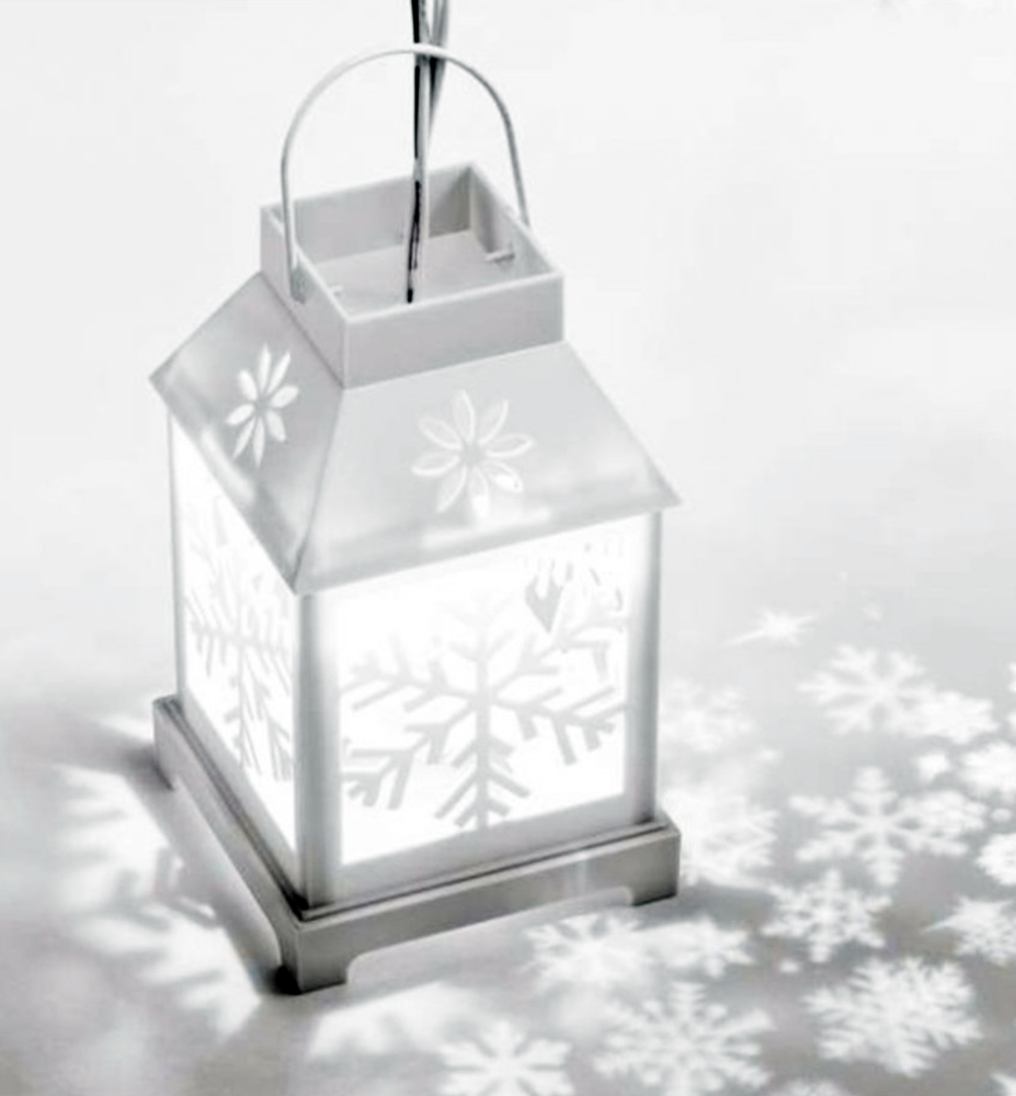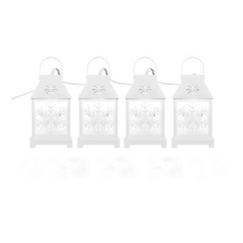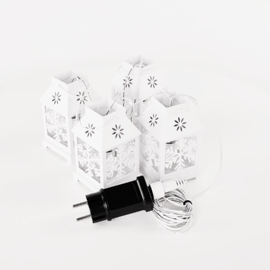 Vianočná LED dekorácia - girlanda s bielymi lampášmi s vločkami.