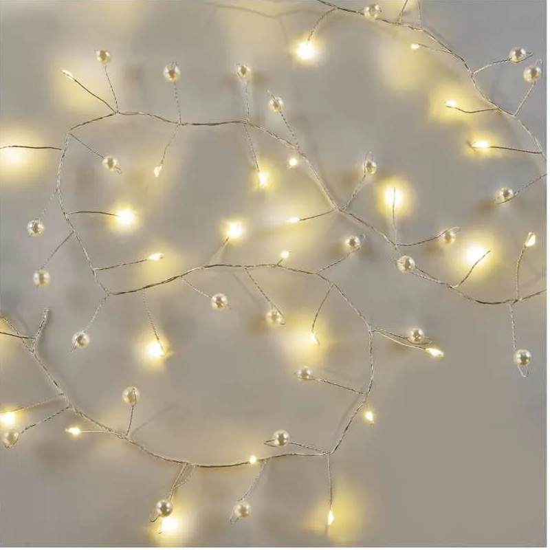 LED vianočná girlanda – perly, 1,2 m, 3x AA, vnútorné, teplá biela, časovač