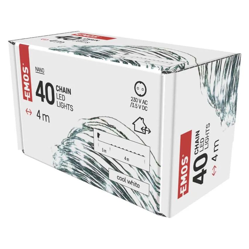 Charakteristika: Vianočná LED reťaz so 40 LED žiarovkami ukrytými v malých kvapôčkach dodá sviatočnú atmosféru akémukoľvek domovu.