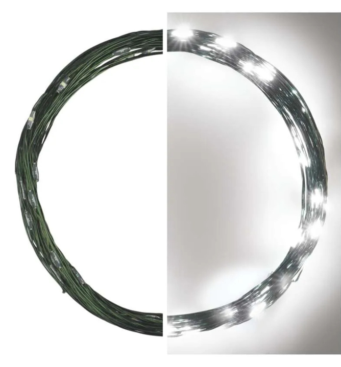 Vianočná LED nano reťaz so studeným bielym odtieňom na výzdobu exteriéru aj interiéru.