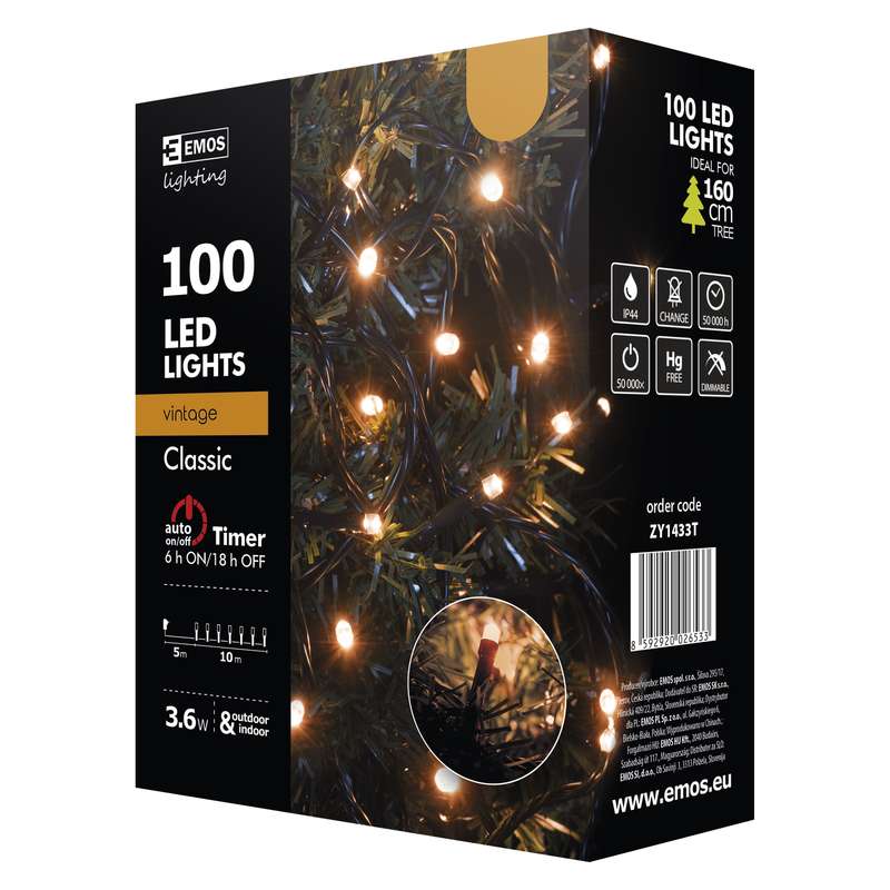 LED vianočná reťaz, 180 LED, 18 m, vonkajšia aj vnútorná, vintage, časovač