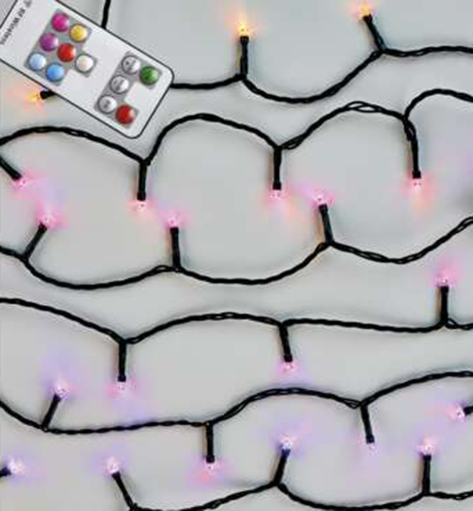 Charakteristika: Multifunkčná vianočná LED reťaz je vhodná pre vnútorné aj vonkajšie použitie. Veľmi pekne vynikne na vianočnom stromčeku, ale aj na ozdobenie terás, zábradlí či iných prvkov v záhrade. Svetelnú reťaz môžete ovládať pomocou praktického diaľkového ovládača, ktorým si vyberiete jednu zo 72 farebných scén. Jednotlivé scény sa líšia farbou svetla, typom blikania, postupným rozsvecovaním (animáciou) alebo zmenou farby svetiel LED.