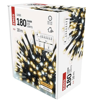 - LED vianočná reťaz 18 m, 180 LED, studená biela/teplá biela, časovač