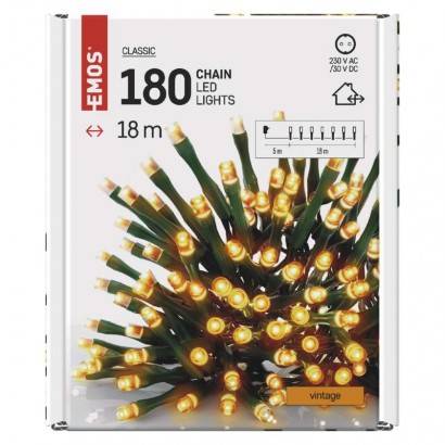 LED vianočná reťaz, 180 LED, 18 m, vonkajšia aj vnútorná, vintage, časovač