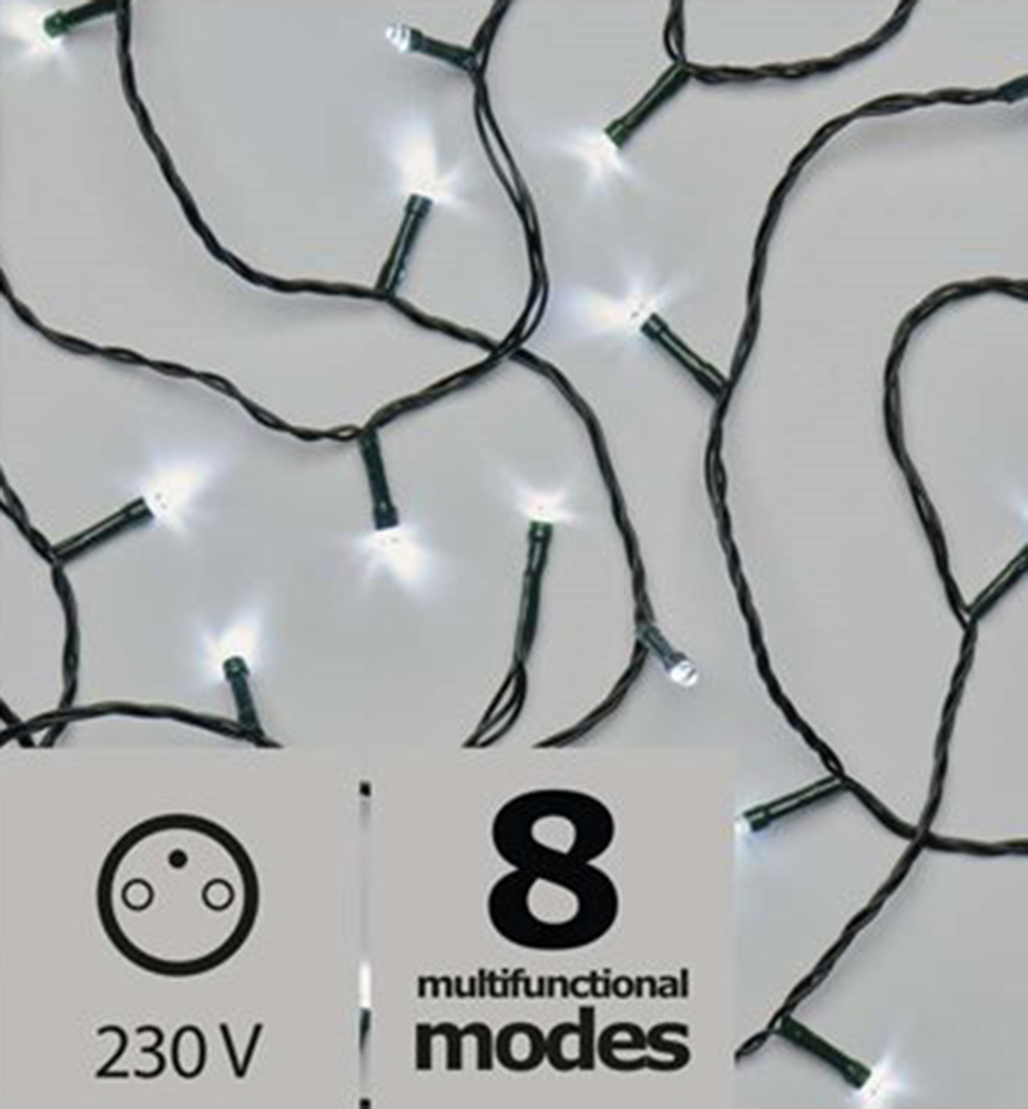 Charakteristika: Vianočná svetelná LED reťaz vhodná ako pre vnútorné, tak aj vonkajšie použitie. Túto multifunkčnú svetelnú reťaz je možné prepnúť do ôsmich rôznych módov svietenia pomocou opakovaného stlačenia tlačidla. Táto Vianočná reťaz, je vhodná na ozdobenie stromčeka, ale aj na vytvorenie očarujúceho svetelného efektu, pred vašim, domom, záhradou, verandou.