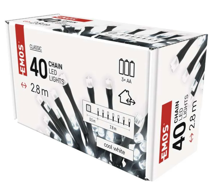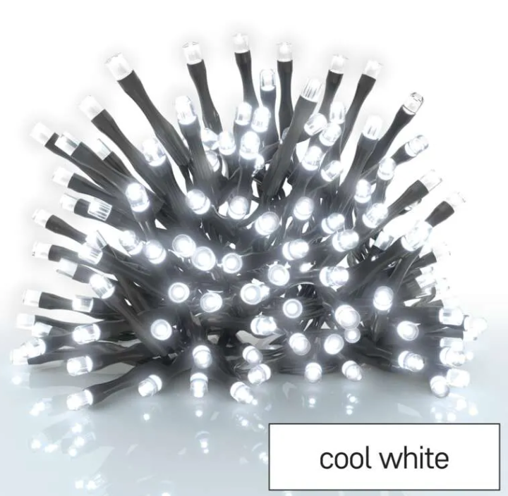 Kvalitná LED reťaz žiariaca studeným bielym odtieňom na výzdobu interiéru a exteriéru.