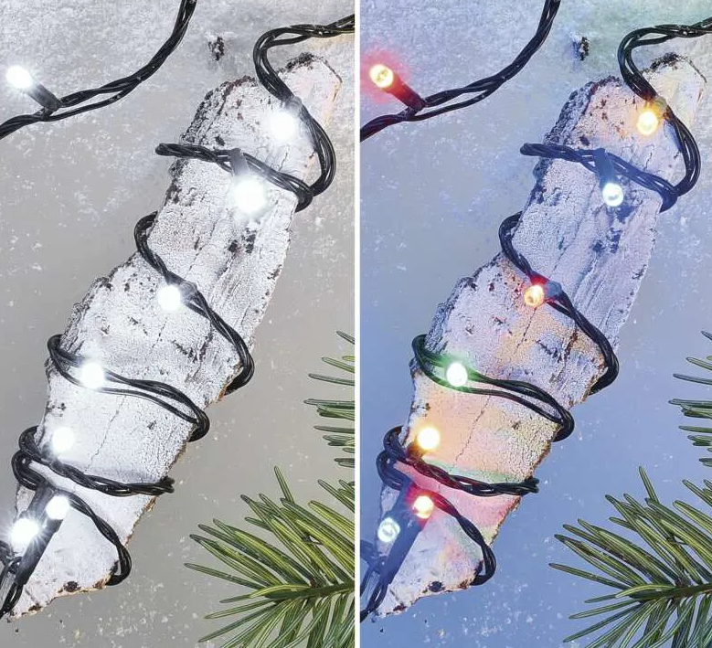 LED vianočná reťaz 2v1, 10 m, 100 LED, studená biela/multicolor, vonkajšia, programy