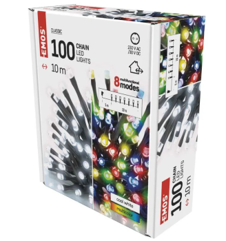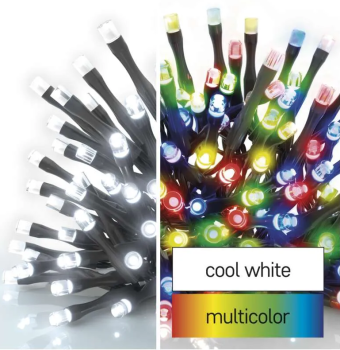 - LED vianočná reťaz 2v1, 10 m, 100 LED, studená biela/multicolor, vonkajšia, programy