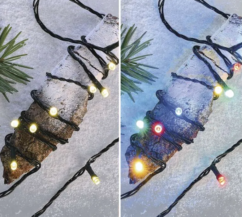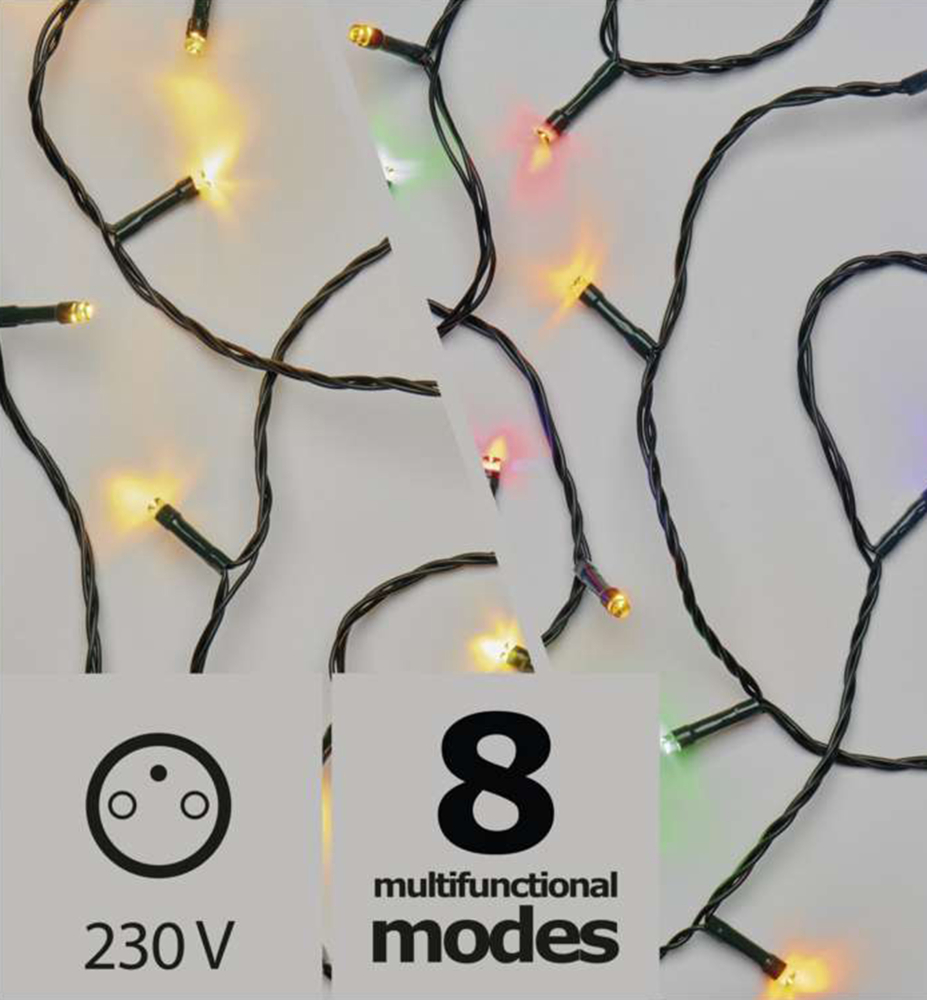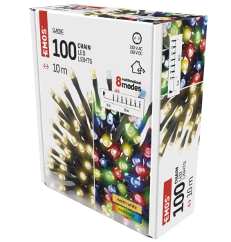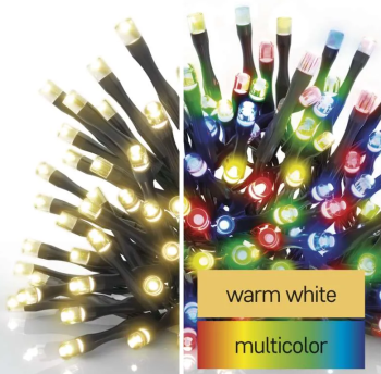 - LED vianočná reťaz 2v1, 10 m, 100 LED, teplá biela/multicolor, vonkajšia, programy
