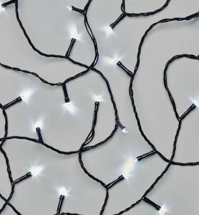 Vianočná reťaz na batérie v studenej bielej farbe, na použitie v interiéri aj exteriéri.