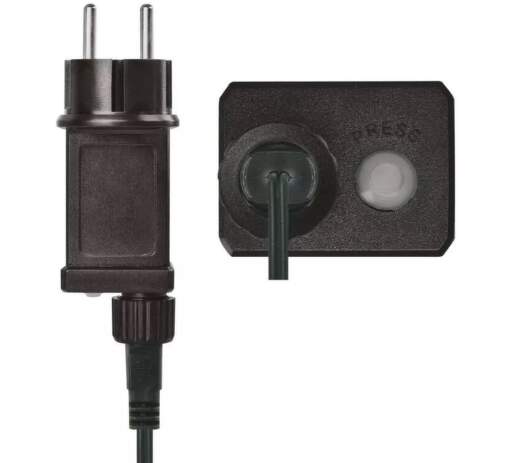 Charakteristika: Táto svetelná reťaz má na tele transformátora (adaptéra) zabudovaný časovač. Funkcia časovača znamená, že po prvom zopnutí bude reťaz svietiť stále. Po druhom zopnutí (rozsvieti sa zelené svetlo) sa nastaví časovač na dobu 6 hodín. Potom sa automaticky vypne a bude po dobu 18 hodín vypnutý. V týchto intervaloch (6 hodín zapnuté / 18 hodín vypnuté) bude automaticky pracovať dovtedy, kým ho tretím zopnutím nevypnete.