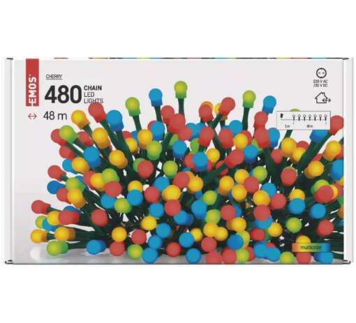 LED vianočná reťaz CHERRY, 48 m, 480 LED, multicolor, časovač, vonkajšia