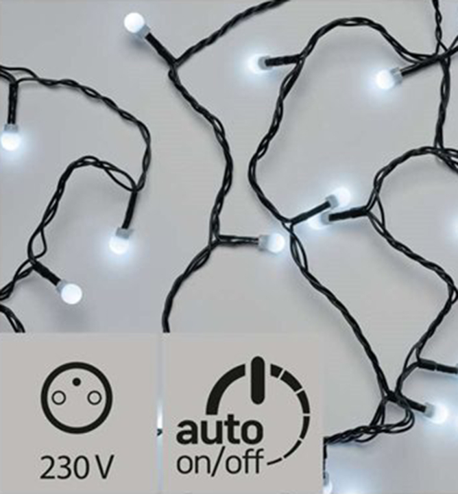 - LED vianočná reťaz CHERRY, guľôčky, 20 m, 200 LED, studená biela, vonkajšia, časovač