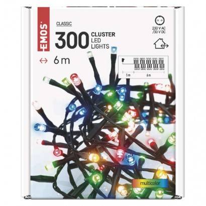 LED vianočná reťaz-cluster, 300 LED, 6 m, vonkajšia aj vnútorná, multicolor, časovač