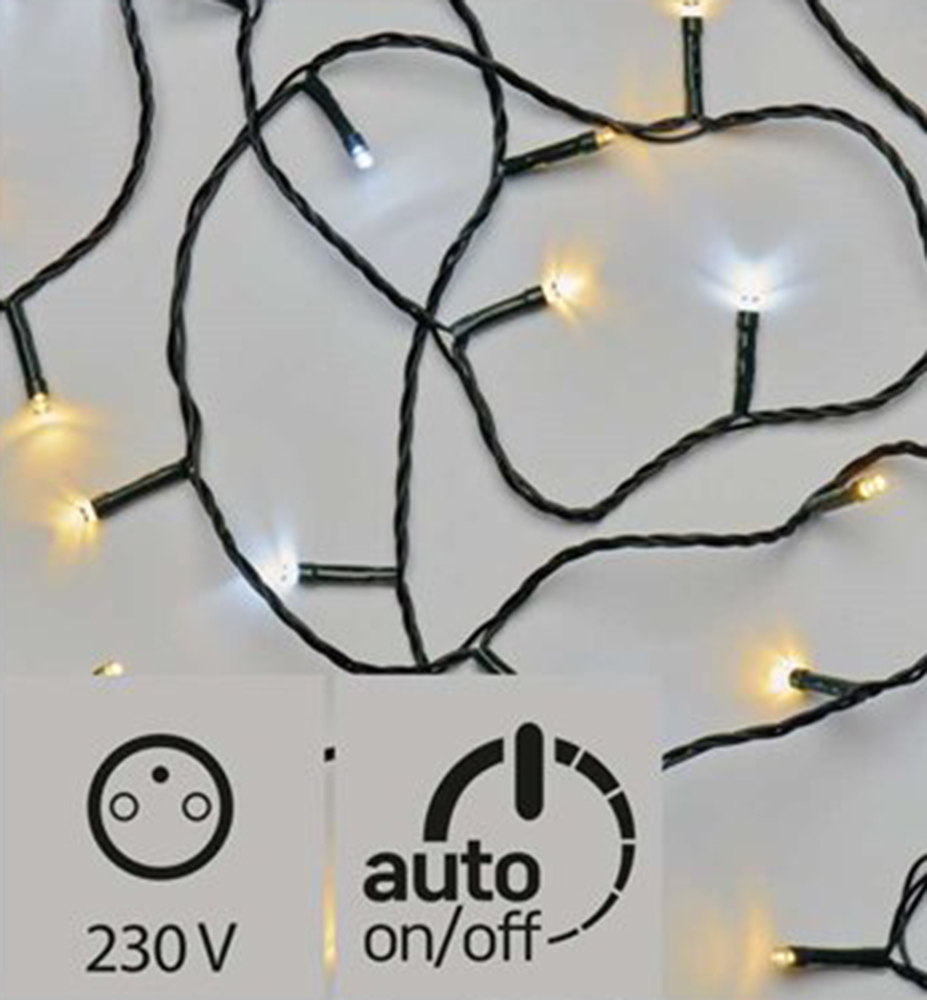 Vianočná LED nano reťaz so studeným bielym odtieňom na výzdobu exteriéru aj interiéru.