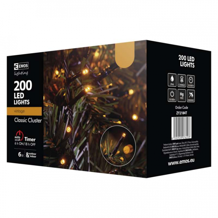 - LED vianočná reťaz STRAPEC, vonkajšia, 4 m, 200 LED, jantárová, časovač