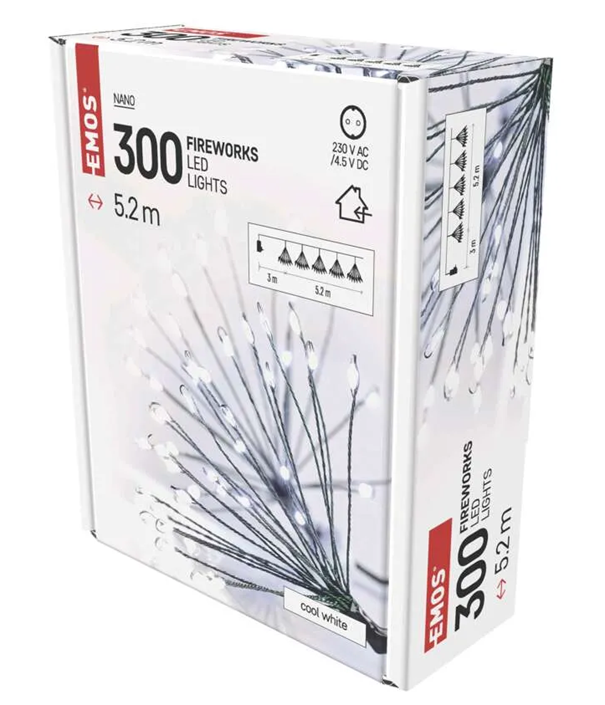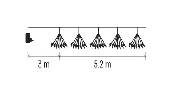Charakteristika: Vianočná LED reťaz so studeným bielym svetlom a s dĺžkou 5,2 metra pre vnútorné použitie.