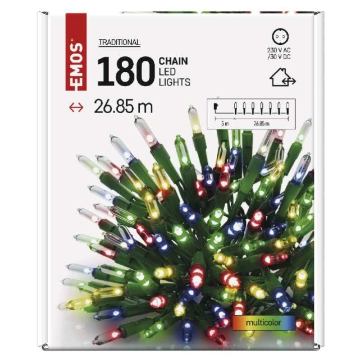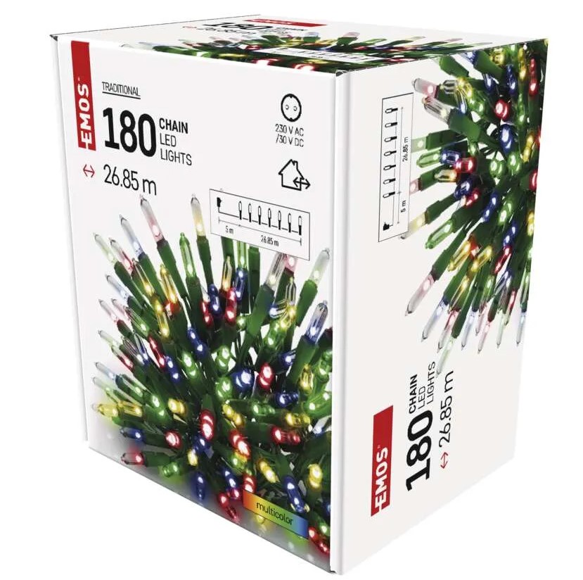 LED vianočná reťaz-tradičná, 180 LED, 26,85m, vonkajšia aj vnútorná, multicolor