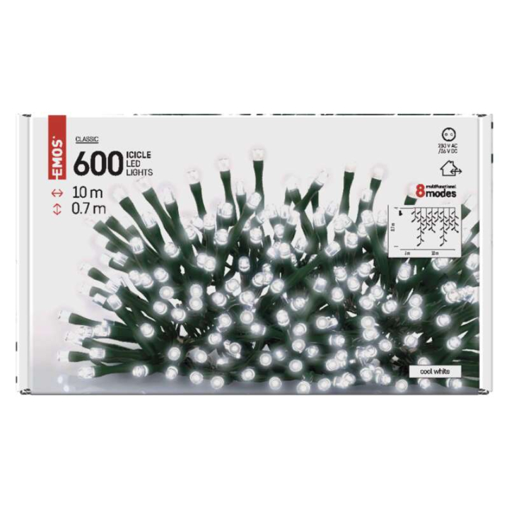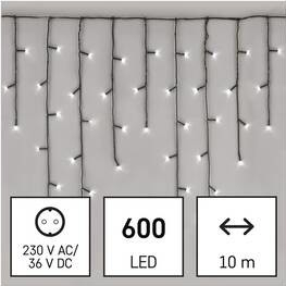 LED vianočné CENCÚLE, 10 m, 600 LED, vonkajšie, studená biela, programy