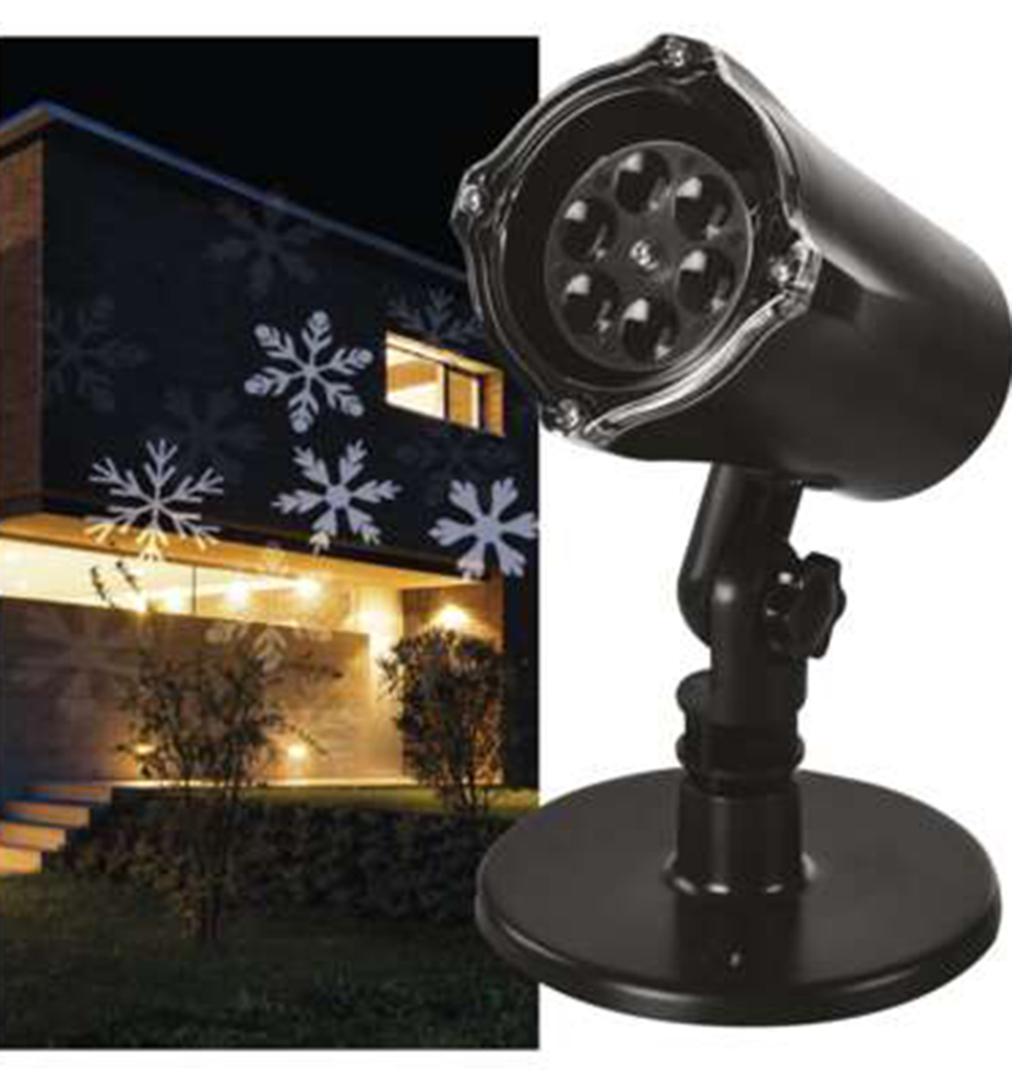 Charakteristika: Svetlo LED s jemne sa pohybujúcimi snehovými vločkami. LED svetelný projektor osvetľujúci celý dom jedným svietidlom.