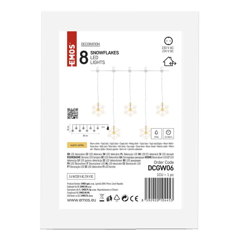 Charakteristika: Táto krásna vianočná dekorácia s vločkami, sa bude dokonale vynímať na vianočnom stromčeku, alebo ako vianočná výzdoba. Pomocou 8 LED žiaroviek, v teplej bielej farbe, vyčarí tú správnu sviatočnú atmosféru. Vianočné osvetlenie je pre vnútorné aj vonkajšie použitie.