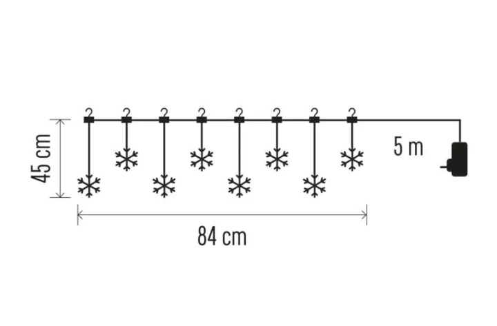 - LED vianočný záves – SNEHOVÉ VLOČKY, 84 cm, vonkajší, teplá biela