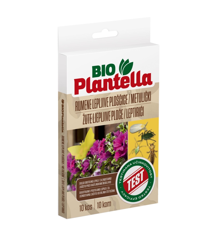 Charakteristika:Lepové dosky slúžia pre monitoring a signalizáciu náletu škodlivého hmyzu. Hmyz je prilákaný na žltú farbu a zachytený na lepovú plochu. Tieto dosky sú v tvare motýľa a jednoducho ich zapichnete do pôdy kvetináča. Používajú sa na ochranu balkónových rastlín, črepníkových rastlín a skleníkov pred hmyzom. Pôsobia na molice, smútivky, vrtivky, okrýdlené vošky, skočky, mínerky, strapky.