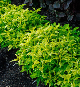 Rýchlo rastúci vyšší ker s panašovanými listami a výrazne červenými výhonmi.