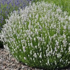 Charakteristika: Levanduľa ´EDELWEISS´ má úzke zelené voňavé listy a vytvára hustý širší trs. Kvitne drobnými bielymi rúrkovitými kvetmi na tenkej stopke. Vďaka nenáročnosti, dlhému a bohatému kvitnutiu má široké využitie v záhradnej architektúre. Jej estetické vlastnosti vyniknú najmä v skupinovej výsadbe. Za pomerne krátky čas vytvorí súvislé voňavé kvitnúce pole. Kvety sa s obľubou využívajú na vytvorenie sušených dekorácií, pretože sú aromatické a po vysušení si zachovávajú pôvodný tvar, na sušenie ich striháme tesne pred plným rozkvitnutím.