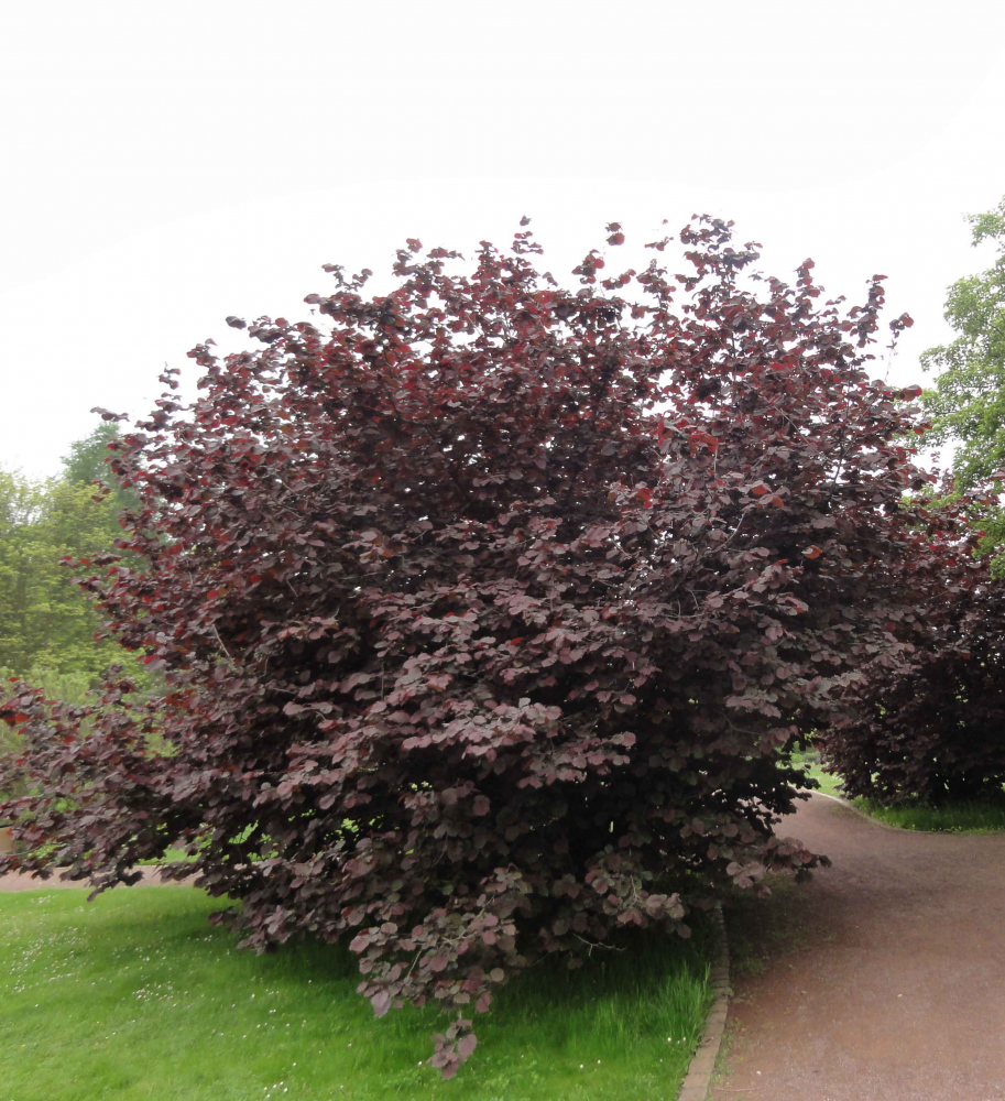 Elegantný dráč stĺpovitého vzrastu s výraznými bordovými listami.