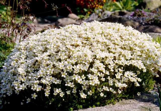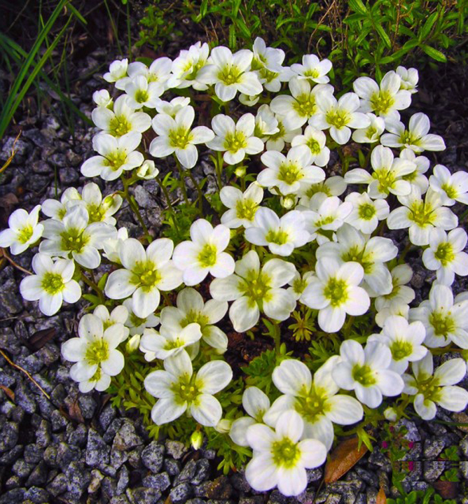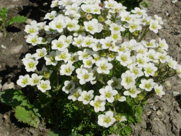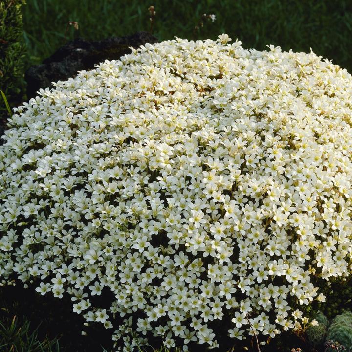 Obľúbený snehobiely lomikameň tvoriaci husté kompaktné vankúšiky.