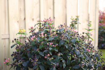Hortenzia s krémovobielmi súkvetiami meniacimi sa na svetloružové diamanty.
