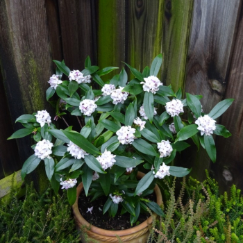 Vyhľadávaný vavrínovec s úzkymi lesklými listami a výraznými bielymi kvetmi.