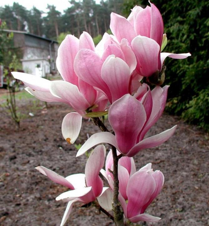 Neskôr kvitnúca veľkokvetá magnólia so snehobielymi kvetmi.