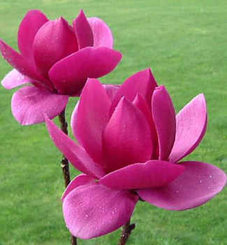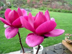 Prekrásna novinka medzi magnóliami s veľkými, výrazne purpurovoružovými kvetmi.