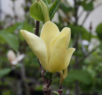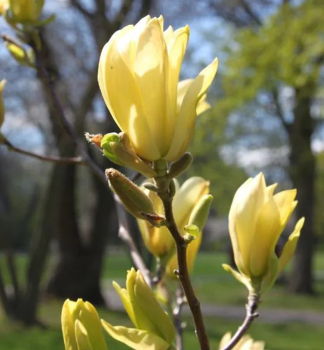 Charakteristika: Magnólia ´SUNSPIRE´ rastie prirodzene do úzkeho, až takmer stĺpovitého habitusu. Jej výška v dospelosti nepresahuje 4 m a šírku 2,5 m. Kvitne koncom apríla, keď už nehrozia silnejšie jarné mrazy, vďaka čomu sa môžeme každoročne tešiť z jej nádherne vyfarbených svetložltých tulipánových kvetov. Okvetné lístky sú dozdobené svetloružovou kresbou. Opadavé listy sú veľké, elipsovitého tvaru, stredne zelenej farby. Skvele sa hodí na výsadbu do črepníka.