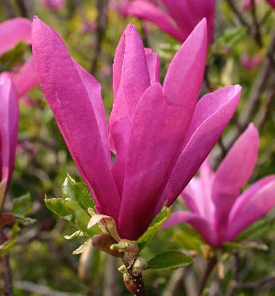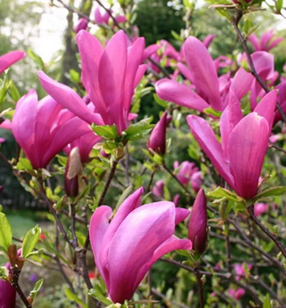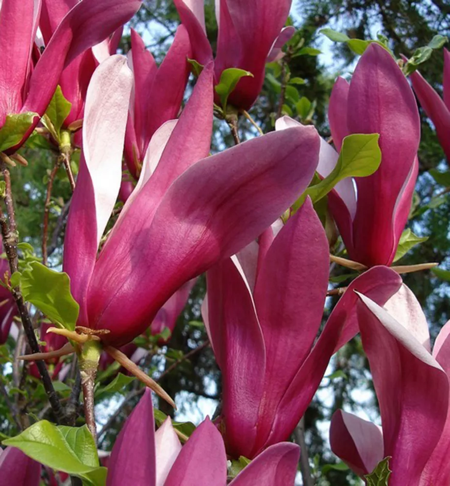 Prekrásna novinka medzi magnóliami s veľkými, výrazne purpurovoružovými kvetmi.