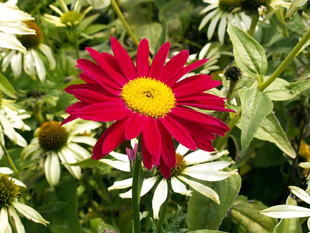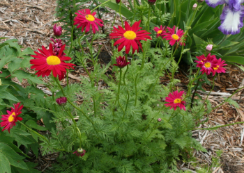 Nátržník "Červené eso"- nižší nenáročný ker s výraznými červenooranžovými kvetmi.