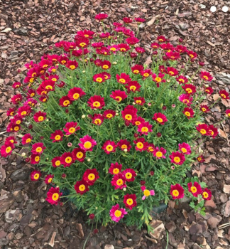 Obľúbená remontantná letná trvalka s dvojfarebnými žlto-červenými kvetmi.