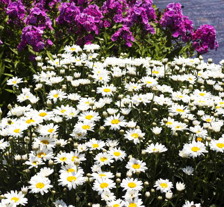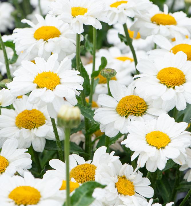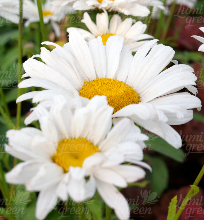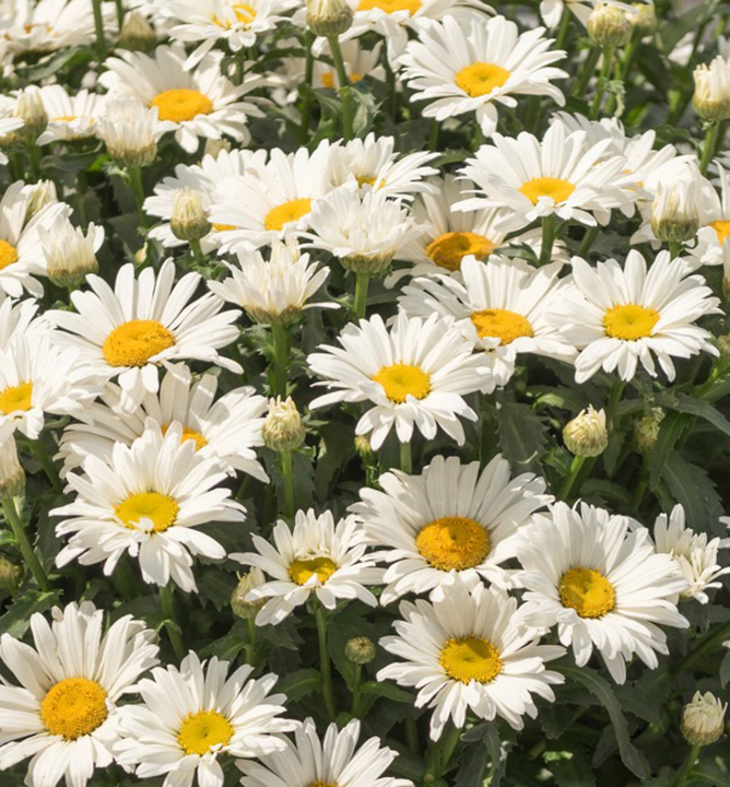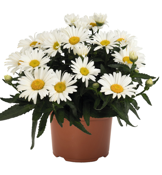 Nová, kompaktne rastúca margaréta s robustnými a hustými bielymi kvetmi.