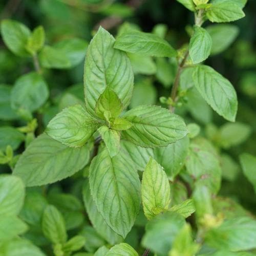 Zaujímavá vodná mäta so sviežimi zelenými listami a fialovými kvetmi.