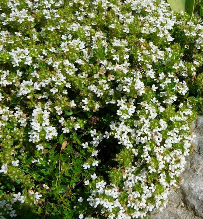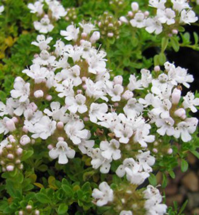 Charakteristika: Materina dúška ´ALBIFLORUS´ za krátky čas vytvorí snehobiely koberec, ktorý okolo seba šíri typickú príjemnú vôňu. Kvitne počas celého leta. Listy sú malé, oválne, sýtozelenej farby. Veľmi dobre sa kombinuje s fialovou a ružovou materinou dúškou.