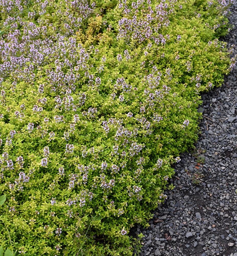 Charakteristika: Stálezelená, voňavá a liečivá trvalka vytvorí hustý koberec v skalke. Bledoružové drobné kvety priťahujú motýle. Celá nadzemná časť rastliny je voňavá a jedlá, preto sa môže využívať v kuchyni ako ochucovadlo. Na začiatku kvitnutia rastlinu zostrihneme a v tieni usušíme. Má posilňujúce, protizápalové a hojivé účinky. Priaznivo pôsobí najmä na tráviacu a nervovú sústavu. Využíva sa pri nespavosti, bolestiach hlavy, závratoch a nervozite. Výborný je aj čaj z materinej dúšky.