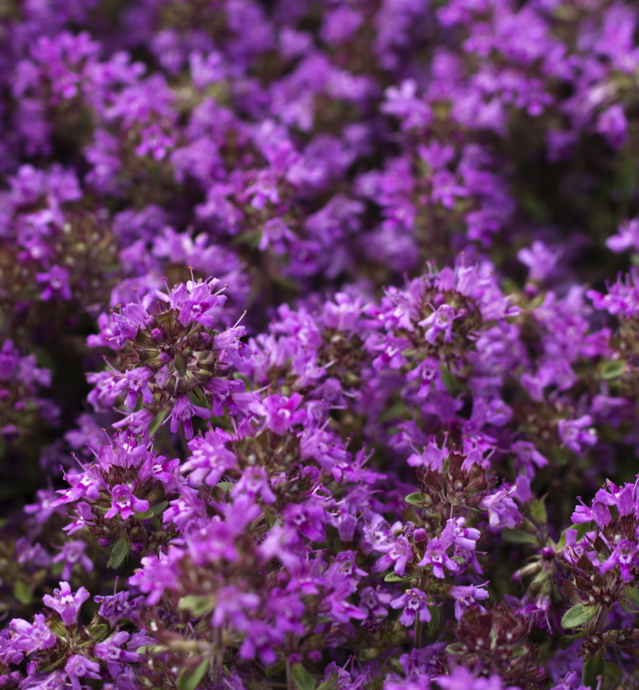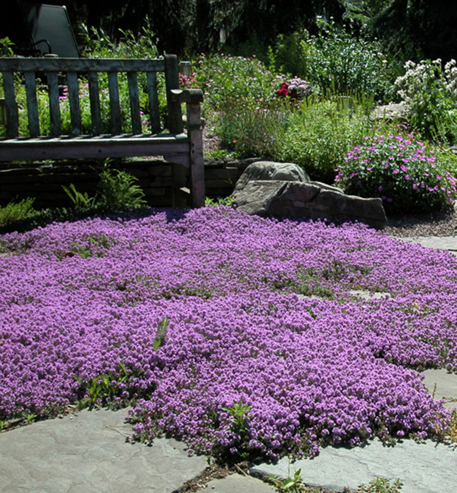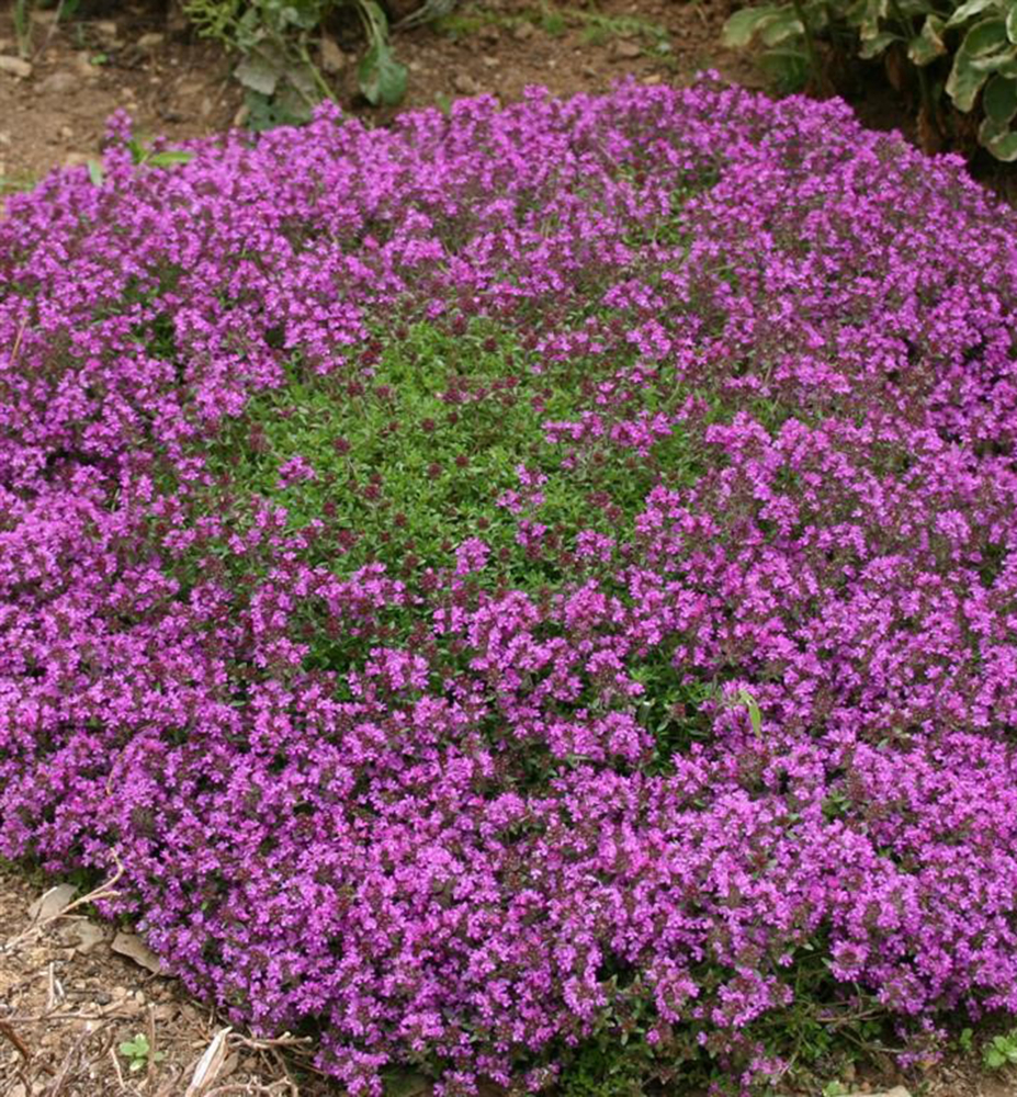 Liečivá, aromatická trvalka, vytvárajúca hustý fialovo ružový koberec.