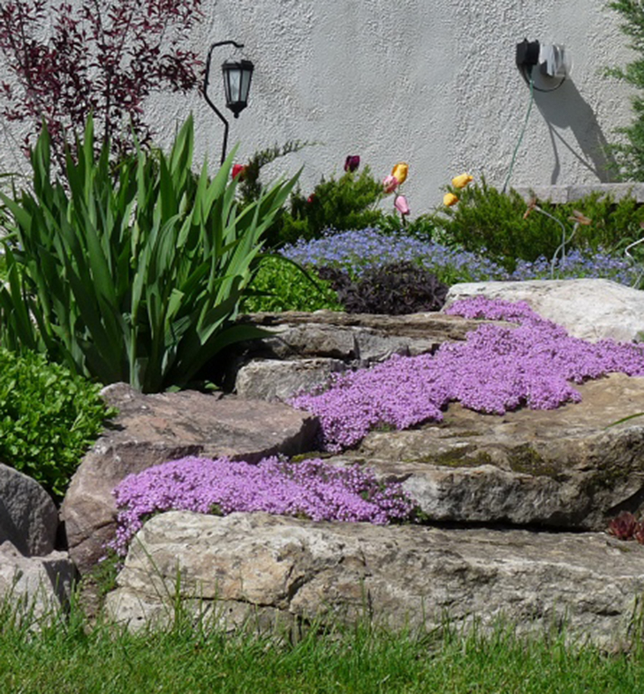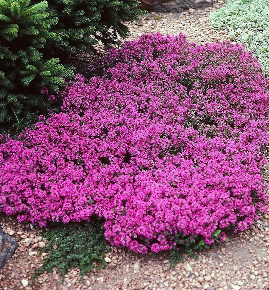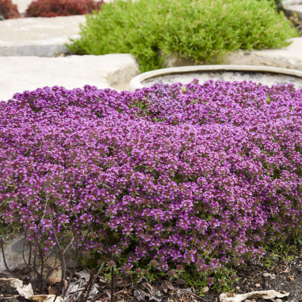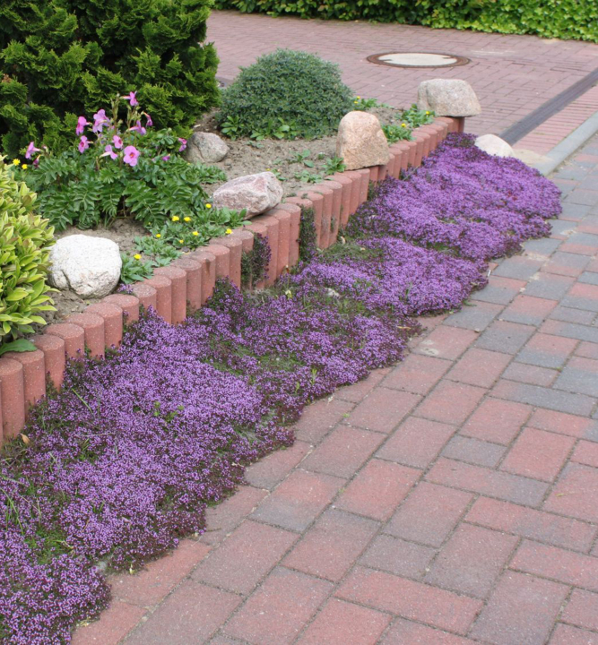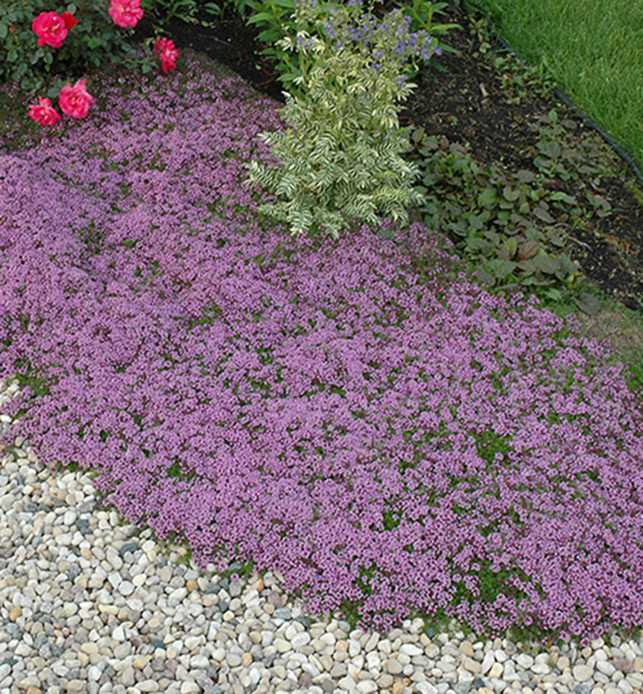 Liečivá, aromatická trvalka, vytvárajúca hustý fialovo ružový koberec.
